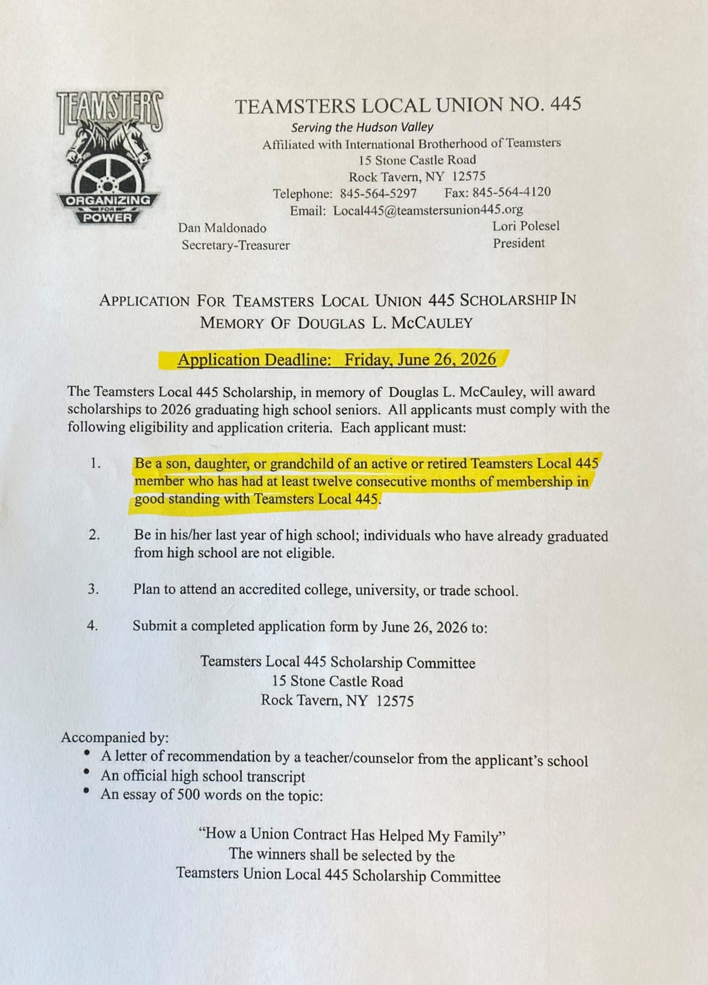 Teamsters Local 445 is the largest and strongest Labor Union in the Hudson Valley in upstate New York. We serve over 3000 members in Orange, Sullivan, Ulster, Dutchess, Rockland, Putnam and Westchester counties.